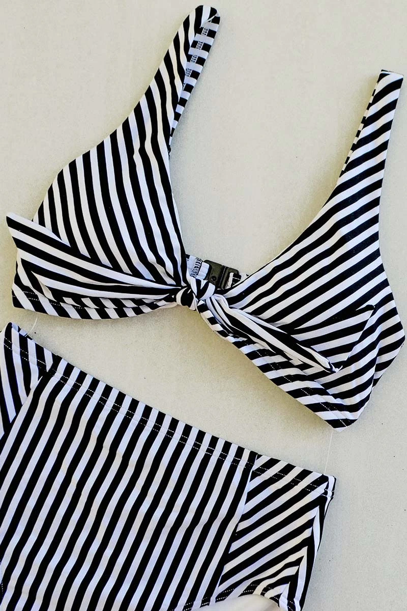 Multifit Cup Support – Our Nip Tuck Swim multifit bra cup technology fits a multitude of bust sizes comfortably with removable cups. Making this swimsuit every woman’s favorite. This faux knot tie front two-piece bikini set fits best B cup, C cup, D cup, DD cup.Â