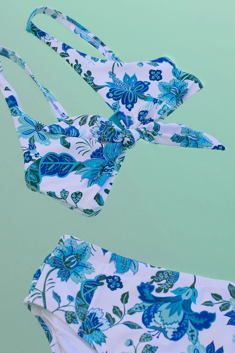 Multifit Cup Support – Our Nip Tuck Swim multifit bra cup technology fits a multitude of bust sizes comfortably with removable cups. Making this swimsuit every woman’s favorite. This faux knot tie front two-piece bikini set fits best B cup, C cup, D cup, DD cup.Â