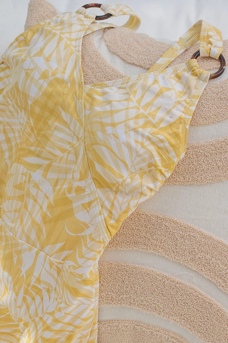 Featured Ring – Make a subtle statement with this featured tortoise shell ring swimsuit. The ring is a beautiful tortoise shell color and design that elevate the elegant swimsuit to a luxury style.